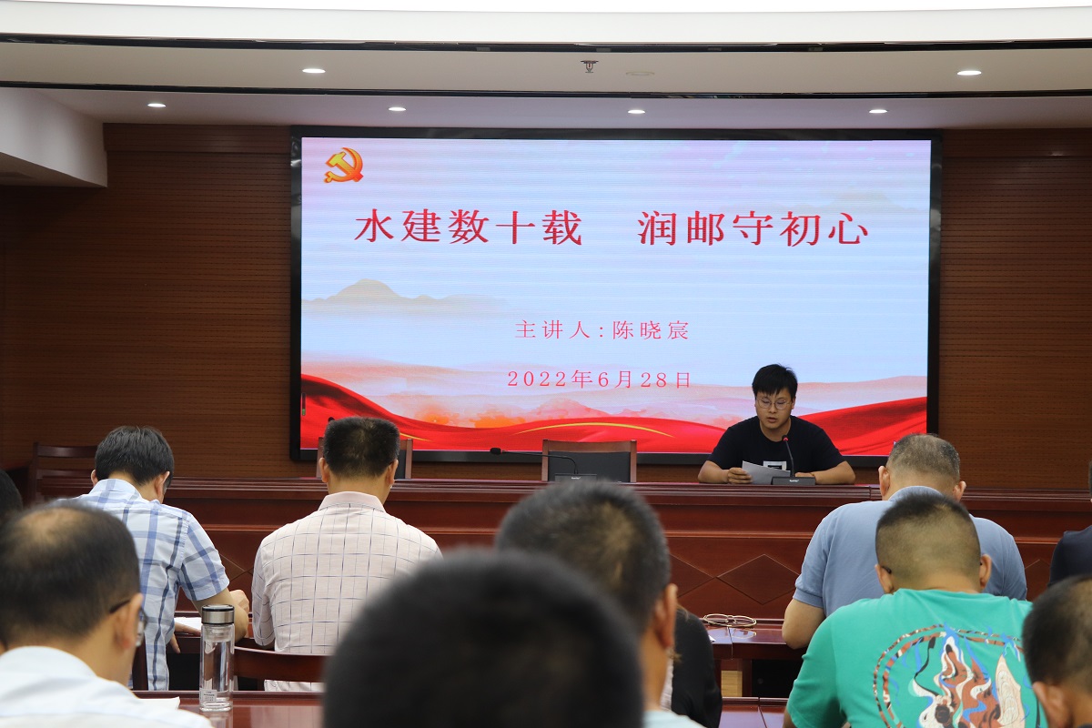 会上,副总经理李勇领学了《中国共产党宣传工作简史》——第二节中国共产党的成立;青年党员代表陈晓宸同志以《水建数十载 润邮守初心》为题,为大家讲微党课;集中观看视频《到人民中去》。