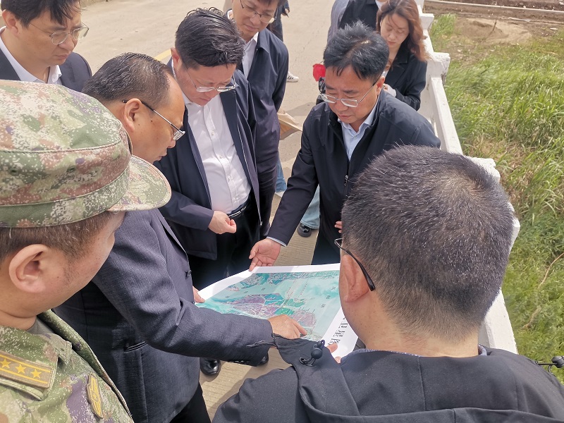 5月10日上午,根据市防汛抗旱暨河湖长制工作会议的安排,市长、市防指总指挥郑志明率副市长、市防指副总指挥赵国祥、王汉东,人武部部长、市防指副总指挥贺杰以及市防指成员单位市政府办、水利局、应急局、资规局、住建局、城管局、气象局主要负责人视察水建集团承建的高邮湖控制线杨庄漫水闸除险加固工程。水建集团党总支书记费庆升陪同参加。