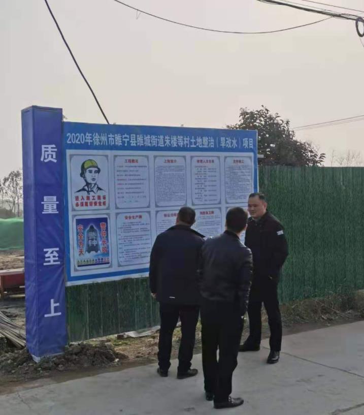 主要检查了2020年度徐州市睢宁县睢城街道朱楼等村土地整治(旱改水)及2020年度徐州市睢宁县梁集镇梁圩、大沙等村土地整治(旱改水)项目,重点对临时用电、临边防护、裸土覆盖、文明施工、工程质量等进行了专项检查。