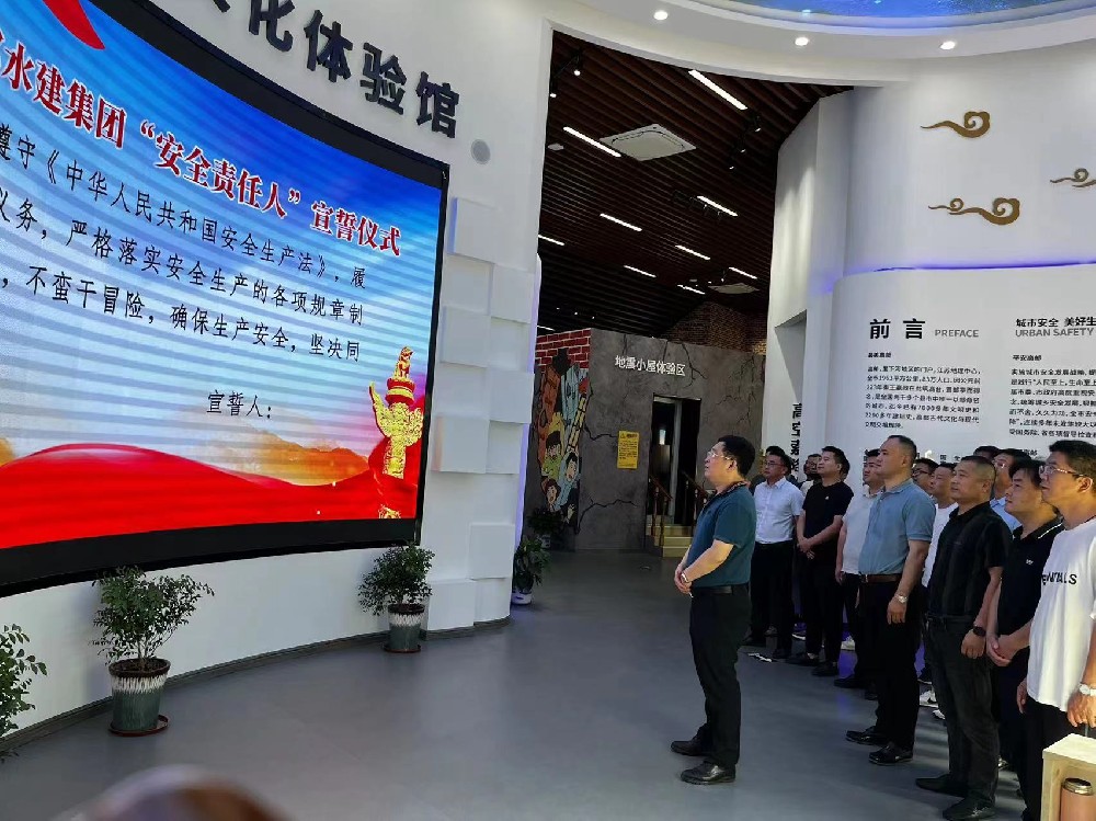 水建集团总经理李进带领参观人员进行“安全责任人”宣誓仪式。