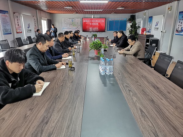 魏军一行实地查看了施工现场,与现场相关负责人进行了交流,询问了关于机械投入、质量控制及安全文明措施投入等情况。随后,在项目部召开会议,详细听取了工程开工以来的实施情况、矛盾调处以及按照施工总进度计划有序推进的措施落实情况的汇报。