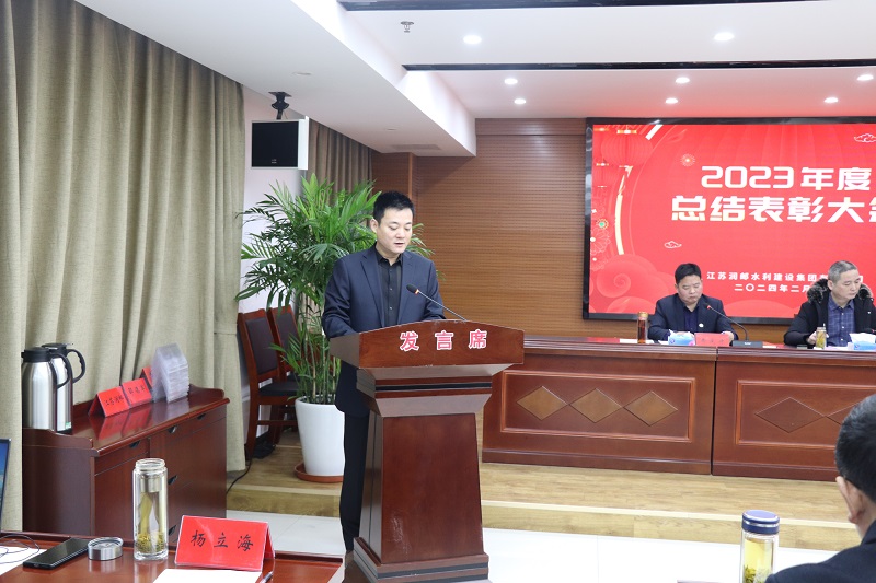 水建集团总经理李进向大会作题为《乘势而上开新局 砥砺奋进续新篇》的工作报告。全面回顾总结了公司2023年取得的优秀成绩、经营亮点和各项荣誉,深刻剖析了存在的问题,客观分析了当前面临的困难挑战,明确提出了2024年的工作思路、措施和要求,并希望全体干部职工以总结表彰大会为契机,审时度势、未雨绸缪,珍惜当前来之不易的发展成果,努力摒弃不利因素,积极解除面临的难题,为江苏润邮的发展开辟出新天地。