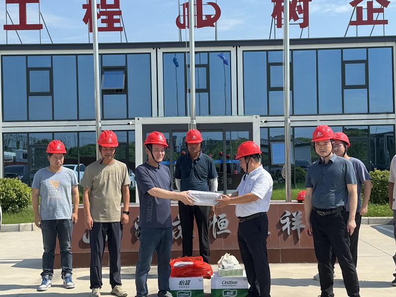 在项目施工现场,慰问组详细询问项目建设进度及工作重难点,认真了解施工人员的工作环境和作业时间,对大家在高温天气下依然坚守岗位、辛勤付出,为公司做出的贡献表示感谢。最后,慰问组强调,希望大家在抢抓项目建设进度的同时,务必做好个人防暑降温措施,提高安全健康意识,保持良好的身体状态。