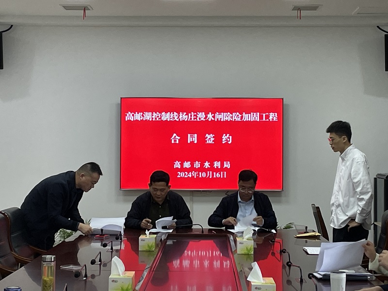 10月16日上午,水建集团与高邮市水利综合服务中心在市水利局成功签约高邮湖控制线杨庄漫水闸除险加固工程施工标工程合同。市水利局副局长赵方庆主持签约仪式,市水利局党组成员杨卫锋、水建集团总经理李进参加签约。