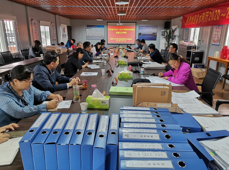 考核组实地查看了施工现场,听取了工程建设情况的详细汇报,查阅了内业资料与视频,并依据《2020~2021年度江苏省水利工程建设质量管理工作考核评分细则》,逐项量化打分。