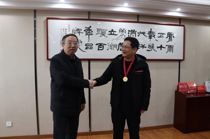 3月9日下午,市人大常委会副主任杨向东一行赴高邮水建,为公司颁发“二〇二〇年度建筑业纳税十强”金牌。