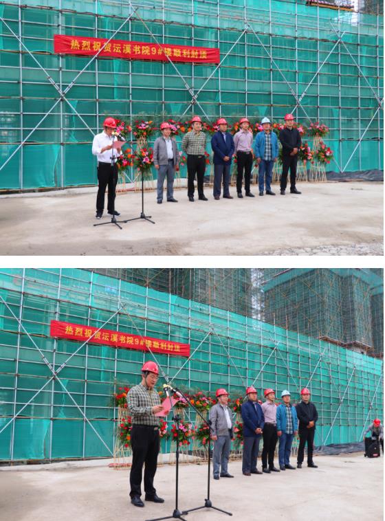 沄溪书院项目自开工以来,通过建设、施工、监理等各参建单位的共同努力,在保证安全生产和工程质量的前提下,赶工期,拼进度,最终圆满完成了工程主体封顶的既定目标。封顶仪式结束后,项目部成员们表示将进一步以建设优质工程的目标为导向,扎实工作,快马加鞭,全力以赴,坚决完成各项工作任务。